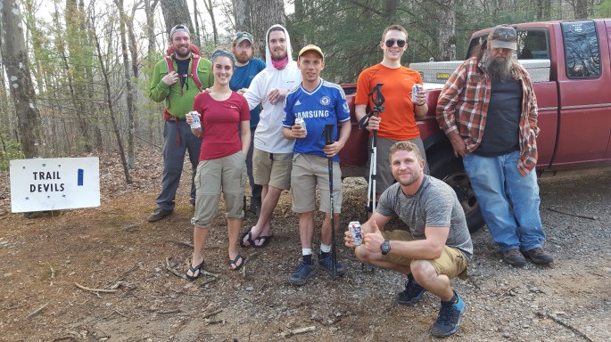 Day 20 we Zero’d in Gatlinburg. The motel we stayed in was generously donated by my Grandma as a congratulations for making it passed mile 200! We left her a voicemail saying thank you as a Tribe, but I’m giving her another shout out from the group to say thank you again! Despite my Grandma donating the room, I gave up the bed to the ladies and the pampered Goalie by sleeping in the arm-chair/footstool. Europeans, apparently, are convinced air conditioning causes people to get sick, so despite the sweltering heat in the room we couldn’t do anything to change it. My sleeping arrangement actually worked out in my favor as the gap between the arm chair and the foot rest allowed for the perfect airflow. As such, I ended up being the most comfortable person in the room that night! I slept like a baby, and even though the day started with waking up in a chair I felt really good. After some slow wake up time we went to resupply at the local Walgreens, which we learned is the 4th busiest Walgreens in the nation due to tourist traffic! With some Dunkin donuts and coffee in our systems we headed back to the room where I spent a majority of the day hanging out in the sun on the front porch writing my last blog post. It took us all some time to get good at the rhythm of hiking and camping each day, but we didn’t need any time to master the art of a Zero day. We probably made four trips to Walgreens for beer and snacks throughout the day, and spent a bit of time swimming around in the motel pool between snack breaks. A few motel guests had the same idea of lounging in the sun off the balcony and we even got a few to act as judges in our hiker tan line competition. Naturally, with years of practice through my lawn business, I won 1st place for best farmers tan. Chip won 1st for most even tan. It’s up to you who really won that contest, but I’d like to think the ladies love a good forearm that’s six shades darker than the rest of my body. Later in the day we got word that another hiker, Chewie, who I’d met back at the Blue Mountain Shelter just before Hiawassee, had finally caught up with us and made it into town. He joined us for some basking and beer drinking before running off to shower and prepare for dinner. Ten’s older brother Mitch arrived around 4:30 to visit and explore Gatlinburg with us too. The Tribe had met him and the rest of Ten’s awesome family for her 30th birthday back in Franklin while Funky Stuff and I charged ahead to miss the cold, so this was my first time meeting the giant teddy bear with a booming voice. Once the whole crew was assembled, Mitch, Chewie, and all, we went to TGI Fridays for dinner. While this was hardly the legendary steak dinner described by hikers on their Zero days, this was a strategic decision as this location participates in the all you can eat apps for $10 deal. Needles to say they didn’t make a dollar off me. We invited Franky the Sleeper to dinner with our group as a thank you for all he does for hikers. During the dinner we learned that he’d given sodas and rides to 78 hikers, and had the goal of helping 100 hikers before heading back home. We talked about all the stories from his Thru Hike in 2015 and learned a few of the tips he had for the trail. Apparently you can see Mt. Katahdin from over 200 miles away, and he showed us his pictures with his trail family on top of the first mountain you can see Katahdin from. I can’t quite remember the name of the mountain, but I figure we’ll probably hear about it again on our way north. He told us it was the first time it really hit him that his journey had an actual ending to it, and how surreal seeing his destination was after months of hiking. We hung out at the restaurant for at least two hours, during which I ate four plates of pot stickers, one plate of wings, one plate of BBQ chicken flatbread, finished half of someone’s spinach artichoke dip, and nibbled on some ribs and more wings. Just when I thought I couldn’t eat anymore, the waitress brought out two scoops of ice bream for Chewie’s 38th birthday. With everyone else already full, and me being the designated eater, I ended up finishing the last scoop of ice cream and my tall blue moon before heading off to the Sugarland Moonshine distillery for a $5 tasting. I missed the chance to try the true blue smooth as water strong as gasoline bootleg moonshine in Hiawassee, but I did get to sample 12 different flavors of shine ranging from creamy coffee to PB & J. They only gave us thimble sized tastings, but after a few afternoon beers and dinner drinks some people felt it more than others. Naturally, when done with a moonshine tasting one must try the local brewery too, so we followed up the tasting by heading off to the Smoky Mountain Brewery for some more apps and beers. While semi new to craft beers, my go to beer has been Saisons. The brewery had an excellent Saison and great panel of a dozen other beers all locally brewed. If you’re ever in Gatlinburg I recommend trying it out! After a few more hiking buddies arrived and some beer inspired rounds of Jameson pickle back shots, a few of the crew, including myself, ended up on the dance floor jamming out to some live music before we headed back to the hotel for water and sleep. The mile walk back was a wild one. Plenty of singing and shenanigans ensued. Most impressive was the duet of You’ve Lost that Loving Feeling by The Righteous Brothers as performed by Mitch and Goalie. I’ll try to post the video I took if I can, it’s.. an experience to behold. We also passed by a 24 hour arcade, and, in accordance with the American experience, Mitch, Goalie, Chewie, and I hung out playing games there till 2:30 am. Once back at the motel, we went back to our rooms and passed out for a few hours before the Easter bunny arrived.