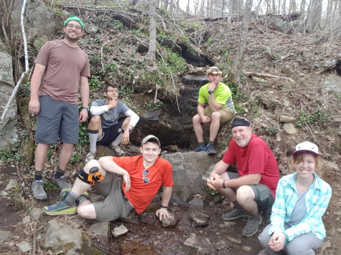 Day 21 began by waking up realizing not enough water followed the whiskey for most people. I had a bed and AC this time and woke up feeling great for a second day in a row despite a few snorers in the room. I made the decision to drink a liter of tap water before bed which worked out in my favor. It’s funny how quickly I’ve been sensitized to bleh tap water in towns when compared to the mountain spring water I’ve survived off of for the last 20ish days. It’s just one of the things in towns that makes me miss the trail. So many folks get to towns and find themselves stuck because they love the luxury. I find myself enjoying it for a day or two before I yearn for the trail again. This is what separates the successful Thru Hikers from the rest. By Hot Springs, NC (Mile 273.4) they say 25 – 30% of hikers drop out because they find themselves drawn to the friends and family who visit or the town life after almost a month of pooping in holes and filtering every drop of water they use. I can’t blame them, towns are designed to be alluring to hikers, but I’ve found a certain serenity to pooping in a hole in the edge of a mountain cliff overview or drinking some of the freshest water the east coast has to offer. After packing my gear and dividing my food between bear can and bear bag (for extra snack storage) I headed off to the Walgreens one last time for stove fuel before meeting the Tribe at Flapjack’s Pancake House for a huge pancake breakfast and a ton of laughs. Not a traditional Easter, but a happy Easter none-the-less! Service in tourist and hiker towns always seems to be amazing. The staff are pleasant and have a little spunk when faced with the sass or wit of travelers. We made a game of designing cool stuff using the paper wraps which hold silverware together and had our waitress judge our creations. Despite being the butt of all the jokes after arriving late, my clip on bow tie, which uses a folded tab of paper to hang on the front of your shirt, won the challenge. While it wasn’t technically a spoken victory, the waitress kept the bow tie and stapled it to her necklace to wear to work every day. This indicated that I’m either the most creative or the best looking, but naturally I just assume both are true. The breakfast itself was awesome, I ordered wild berry pancakes and requested some whipped cream for a few extra calories and was gifted the great wall O’ whip. I really need to figure out this picture situation. Gatlinburg ended up being an amazing bonding experience. Booze always makes things silly or messy, but the time we spent together and the inside jokes we created really solidified a sense of unity in the group. While I had previously expected to charge ahead of the group to make miles after a while, the time spent over the Zero really convinced me that it’s not just about the miles but the experiences I choose to allow for myself throughout those miles. When I think I should hike but people are going somewhere, sometimes its good to step back and think about what I’m really going to remember when I’m done or in 10 years from now. Why hike 2,200 miles if I have no stories to remember those miles? Eventually we finished eating and headed back to pile into Mitch’s truck. Goalie, being BFFs with Mitch, decided to take time off the trail to explore the south with Mitch before continuing. He decided to meet us in Damascus in a few weeks, not worrying about the purist idea of hiking every mile. Hunkered down in the back of the truck with Chewie this time, we headed back to newfound Gap (Mile 206.8) to start our hike once again. This trip is actually where I finished and posted my last blog post! Once at the parking lot, we hugged Mitch and Goalie goodbye before marching on. After a night of drinking, most people weren’t overwhelmingly excited about putting on big miles for the day. We’ve found the first day out of towns is typically the worst. You’d think the rest would refresh the body, but instead it seems to make you sluggish. On top of having done nothing for a day and having a pack newly refilled with several pounds of food, most towns and roads sit at the bottom of a valley.. meaning the first few miles go nowhere but up up up. Keeping with the theme of the tourist town we left, the parking lost we set off from was full of people who could smell us, even after showering, and yet were still curious enough to brave the haze and ask us questions or take pictures with us. After three or four groups of tourists we hurried past a few more in order to finally start hiking again. If we stayed any longer we likely would have been swallowed up by questions and pictures. Despite the uphill battle, the terrain was pleasantly different from when we had climbed down from Clingmans dome. This was the first part of the trail where rocks and roots really made an effort to slow your roll. While both are omnipresent throughout the trail, this section had a comfortable amount which forced you to slow down and enjoy your walk. That is, if you’re a day hiker and aren’t carrying gear and a fresh restock. It wasn’t rock scrambling, just large stone steps and shelves which demanded careful attention to maneuver. Many close calls were had while distractedly talking and walking down the trail. At the Icewater Spring Shelter (Mile 209.8) we stopped for a snack and met a Trail Runner named Chloe. Trail Runners are individuals paid by the park service to do just what their name implies. They maintain and regulate sections by checking permits, cleaning up trash, and maintain privies and shelters. After commenting about my envy she commented on the difference between her job and backpacking. Even beyond the trash and responsibilities, in a culture dominated by people wanting to leave the world behind, she represents “The Man”. Regardless of being really cool, she’s the bad guy in the eyes of many hikers. I’ve heard several stories of over bearing trail run